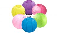 Набор подвесных фонариков,рисовая бумага, 6 шт,(ярко-розовый, красный,розовый, сиреневый, зеленый, синий, желтый)