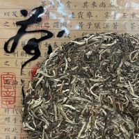 Белый Пуэр "Зеленая почка" в лепешке, не сильно плотно спрессованный в круглую лепёшку.